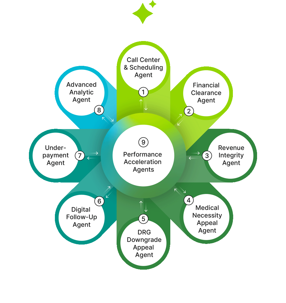Our agentic platform deploys specialized digital workers across the revenue cycle and orchestrates them through shared data, controls, and performance signals. The result is execution at scale, agents that prioritize, act, and improve over time, driving measurable financial outcomes.